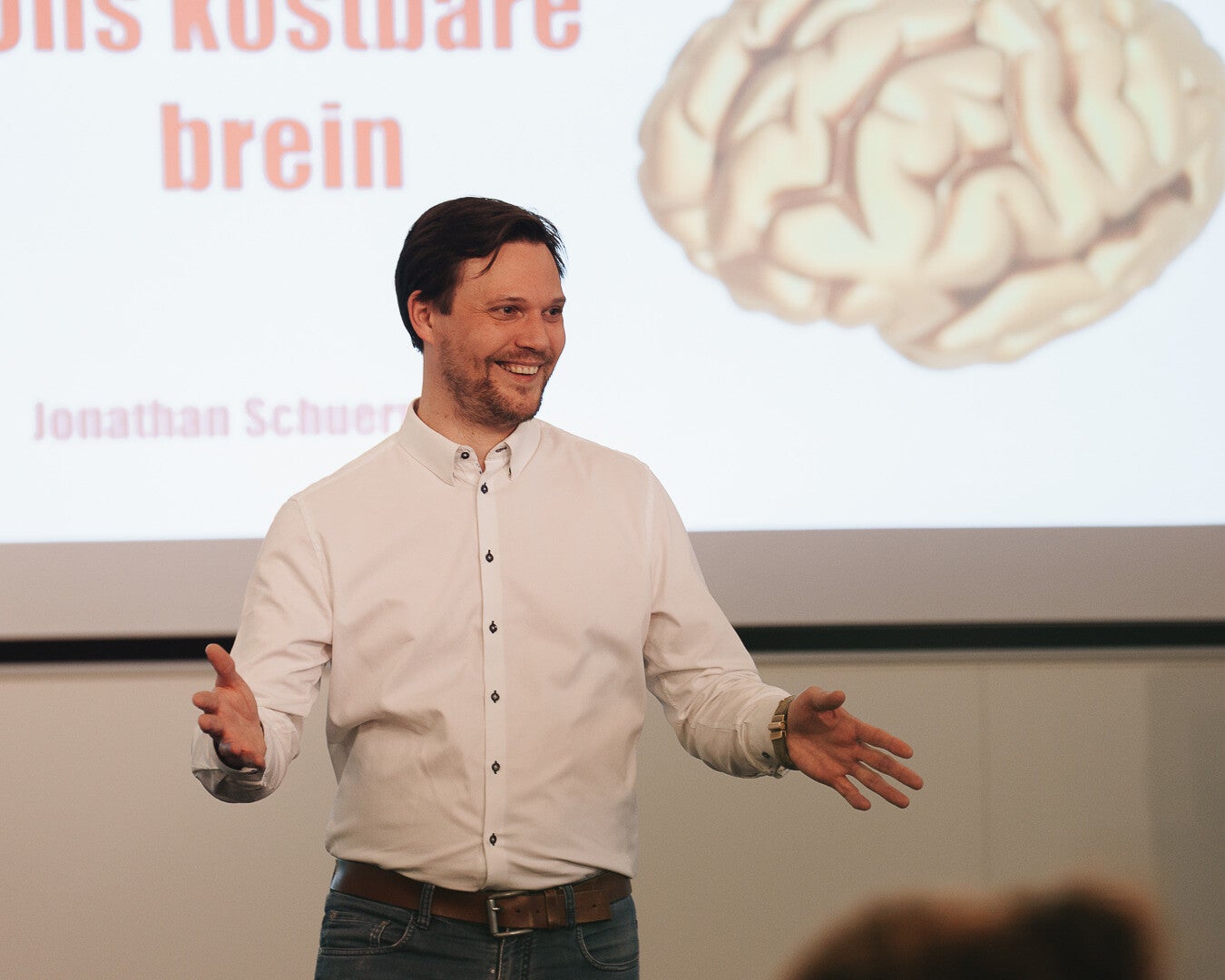 Jonathan Schuermans brengt als Humorstrateeg een verfrissend en onderbouwd geluid naar het podium. Zijn keynotes zijn geen traditionele presentaties, maar energieke sessies vol praktische inzichten en interactie. Met humor als hefboom maakt hij moeilijke thema’s bespreekbaar en toegankelijk, en betrekt hij het publiek actief in het verhaal.
